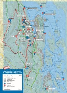 Tahkolta voit tehdä lyhyitä pyrähdyksiä tai lähteä pitemmällekin retkille SUP -laudan avulla. Jos oma lauta ei tullut mukaan, niin eipä hätää, senhän voi vuokrata HillSki Rentistä.