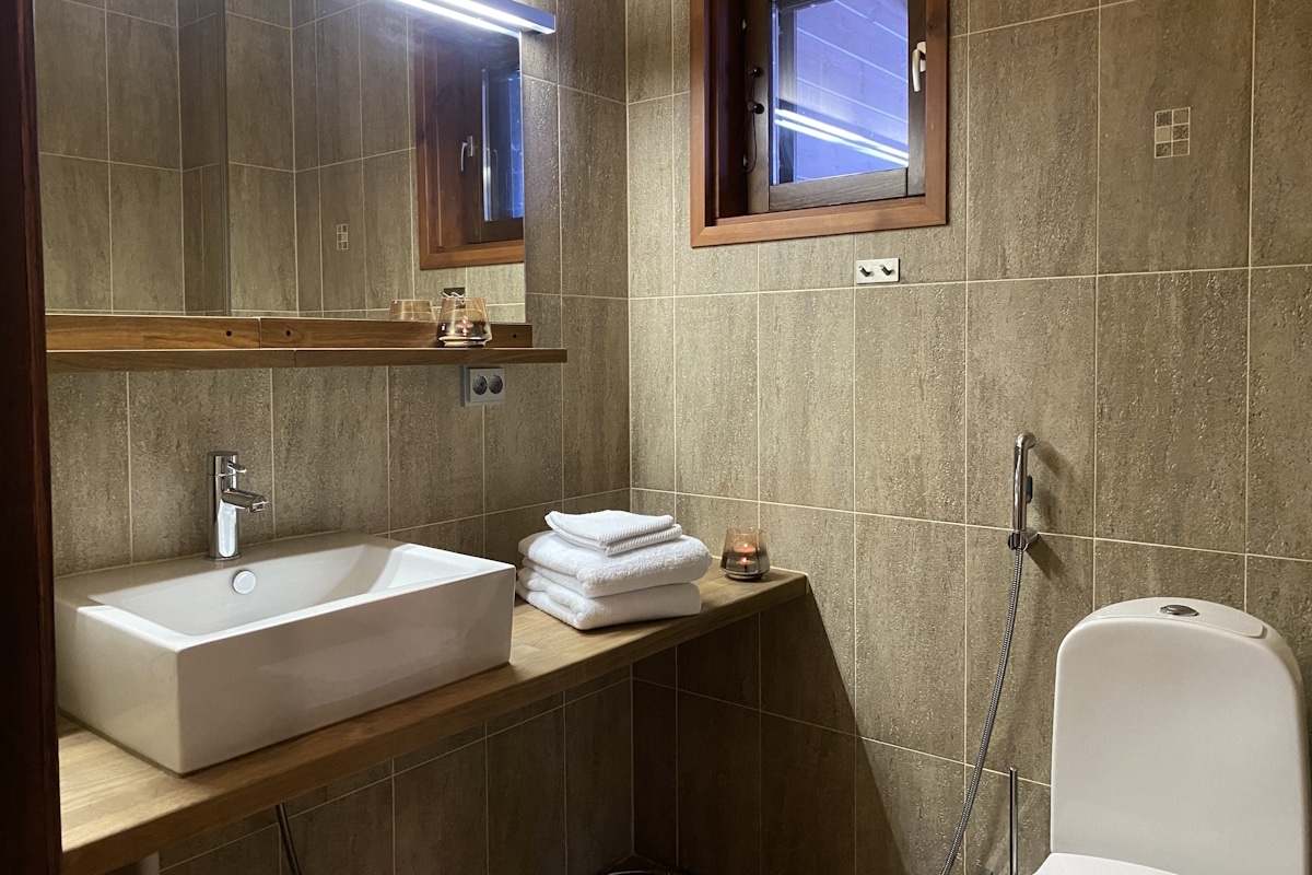 - Hyvin varusteltu: sauna porealtaalla, täysin varusteltu keittiö, takka ja terassi.